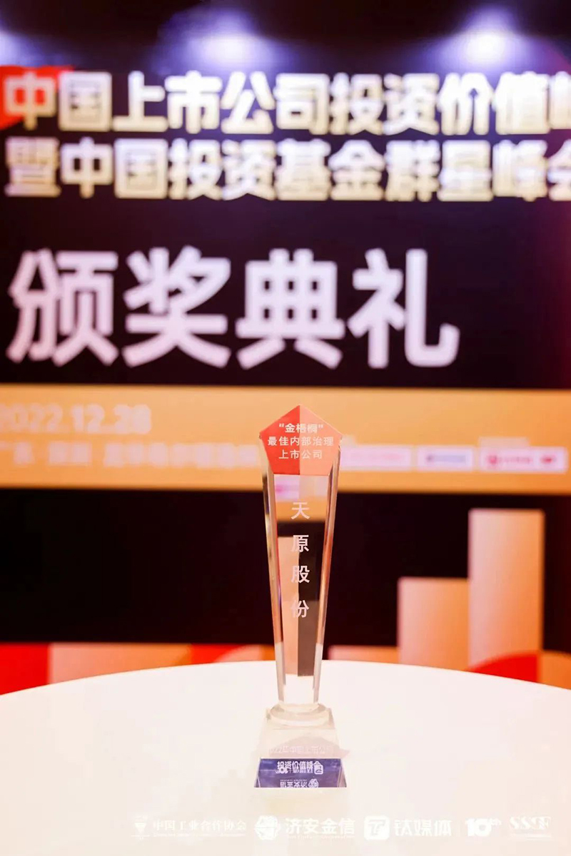 12月28日,2022年中國(guó)上市公司投資價(jià)值峰會(huì)暨中國(guó)投資基金群星峰會(huì)在深圳舉行,在“雙峰會(huì)”上重磅發(fā)布了中國(guó)上市公司投資價(jià)值“金梧桐”獎(jiǎng)評(píng)選,天原股份憑借高質(zhì)量的內(nèi)部治理與管理能力,榮獲“金梧桐”最佳內(nèi)部治理上市公司獎(jiǎng)。