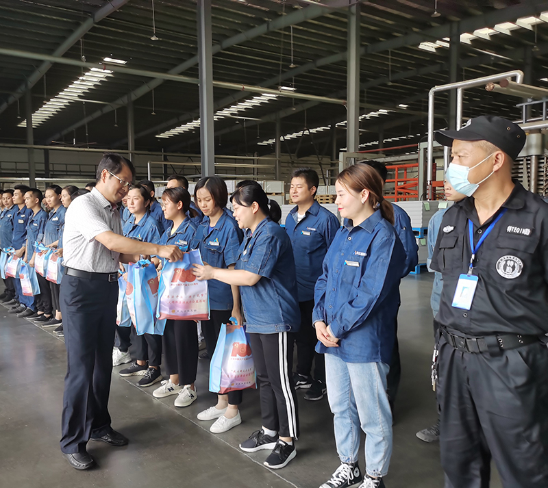 7月9日,宜賓市總工會(huì)黨組成員、副主席景洪倫率隊(duì)到天原集團(tuán)天億新材料開(kāi)展“夏送清涼”慰問(wèn)活動(dòng),為一線職工代表送上藿香正氣口服液、板藍(lán)根、菊花茶等清涼消暑物資,向奮戰(zhàn)在高溫一線的他們表示慰問(wèn)。