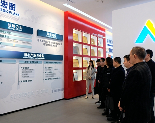 隨后,前往天億新材料公司參觀PVC-O管道和仟領(lǐng)地板展廳,深入考察產(chǎn)品性能與應(yīng)用,重點了解公司全生命周期綠色環(huán)保PVC-O+ARG建筑供水解決方案以及高科技、高功能仟領(lǐng)地板的產(chǎn)品特性,對天億新材料公司近年來獲得的綠色工廠示范企業(yè)、工業(yè)產(chǎn)品綠色設(shè)計示范單位等榮譽給予贊賞,并表示將借助宜賓市大力推動“宜賓造”產(chǎn)品市場拓展的契機,與天原集團(tuán)深入開展交流合作,精準(zhǔn)對接產(chǎn)品應(yīng)用,共同推動“宜賓造”走向千家萬戶。