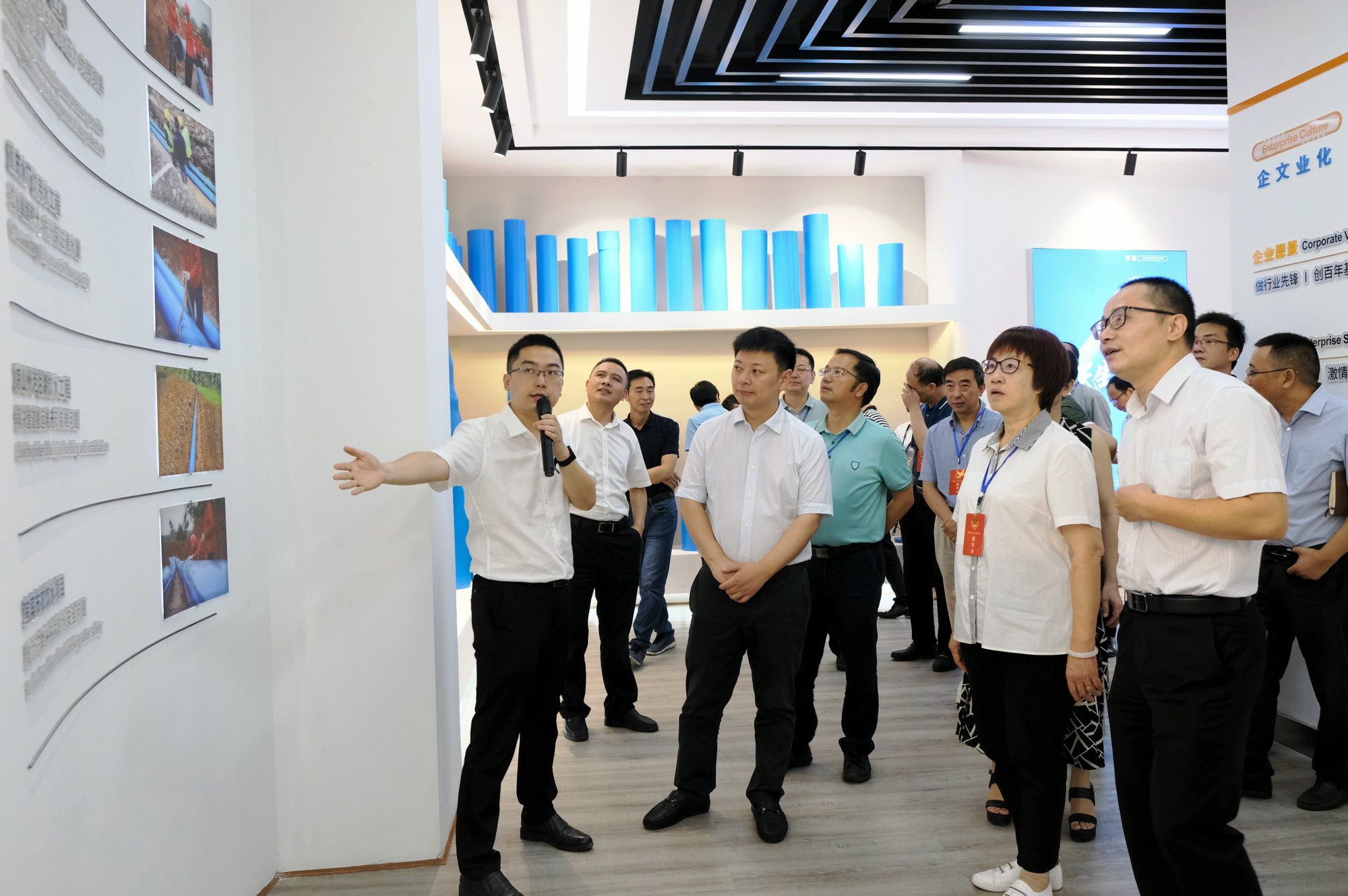 調(diào)研組一行來到天原集團天億新材料科技有限公司生產(chǎn)現(xiàn)場,參觀了PVC-O和LVT地板兩個產(chǎn)品展示廳,詳細了解了產(chǎn)品特性、行業(yè)水平、未來發(fā)展、銷售市場等情況,天原集團黨委副書記、CEO兼總裁鄧敏,副總裁楊建中就天原集團“一體兩翼”戰(zhàn)略發(fā)展規(guī)劃、產(chǎn)品應(yīng)用領(lǐng)域、行業(yè)水平以及天原集團綠色循環(huán)可持續(xù)發(fā)展體系成果作了現(xiàn)場匯報。