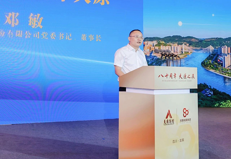 活動上,宜賓市委副書記、市長廖文彬代表宜賓市委、市人大、市政府、市政協(xié),向天原集團(tuán)成立八十周年表示祝賀,向各位領(lǐng)導(dǎo)、各位嘉賓、各位企業(yè)家、各位朋友致以誠摯的問候和美好的祝福。并表示,天原集團(tuán)作為扎根宜賓的國有支柱企業(yè),始終與祖國共命運,與時代同發(fā)展。天原集團(tuán)的轉(zhuǎn)型發(fā)展之路,就是宜賓堅定不移推動工業(yè)新市、制造強市實現(xiàn)向新逐綠、蝶變涅槃的生動寫照。希望天原集團(tuán)以八十周年為新的起點,發(fā)揚“慕義求真、融醞和美,匯江向海、逐立上游”的新時代宜賓精神,秉持“遠(yuǎn)見引領(lǐng)、創(chuàng)新為本、善集大成、追求卓越”的企業(yè)核心價值觀,進(jìn)一步做強做優(yōu)做大國有資本,朝著“世界一流企業(yè)”的目標(biāo)勇毅前行。也期待各位企業(yè)家朋友更加廣泛的參與到宜賓的發(fā)展熱潮中來,與我們共享合作機遇、共襄發(fā)展盛舉、共謀未來新篇。