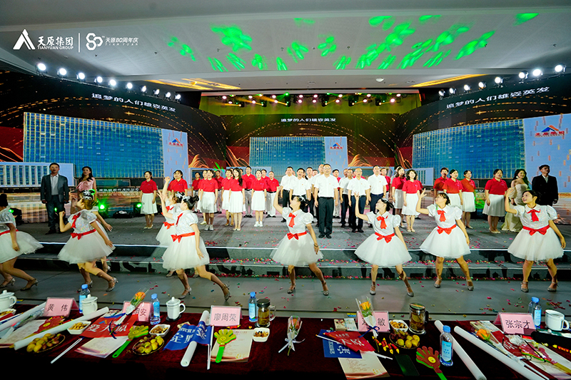 75年,強國富民勵精圖治,九州歡暢盛世安;80載,銳意進取轉型升級,產業(yè)蝶變舞涅槃。為慶祝中華人民共和國成立七十五周年暨天原建企八十周年,展現(xiàn)天原集團發(fā)揚紅色基因、賡續(xù)紅色血脈的赤誠之情和廣大干部職工砥礪奮進、篤行不怠的使命擔當,天原集團于9月29日舉辦了“慶祝新中國成立75周年暨天原建企八十周年”文藝匯演活動。天原集團黨委書記、董事長鄧敏及在家班子領導,集團各產業(yè)鏈子公司黨、政、工負責人,中層管理人員代表,基層管理人員代表,優(yōu)秀專家人才代表和黨員、團員青年代表等500人參加活動。